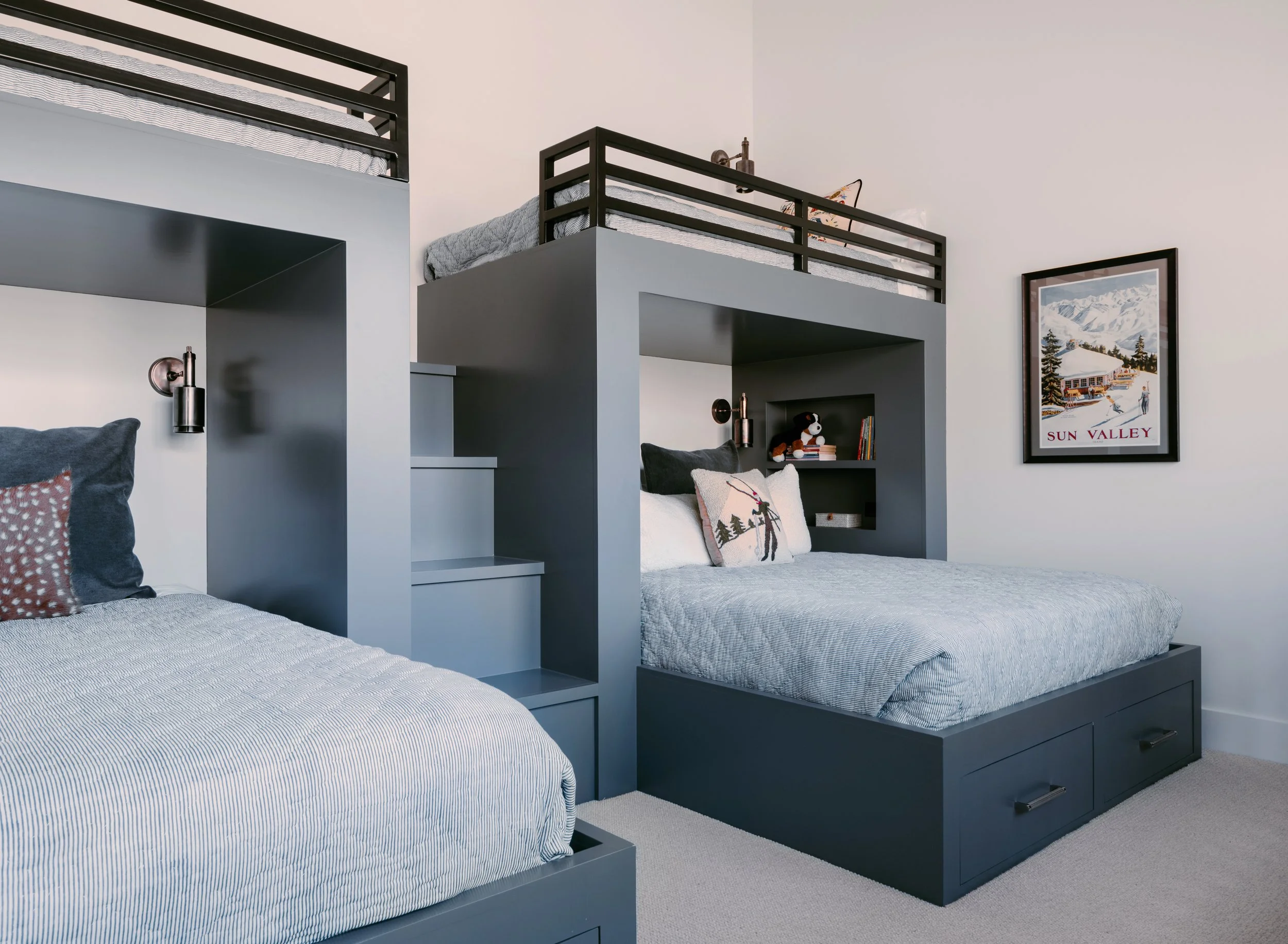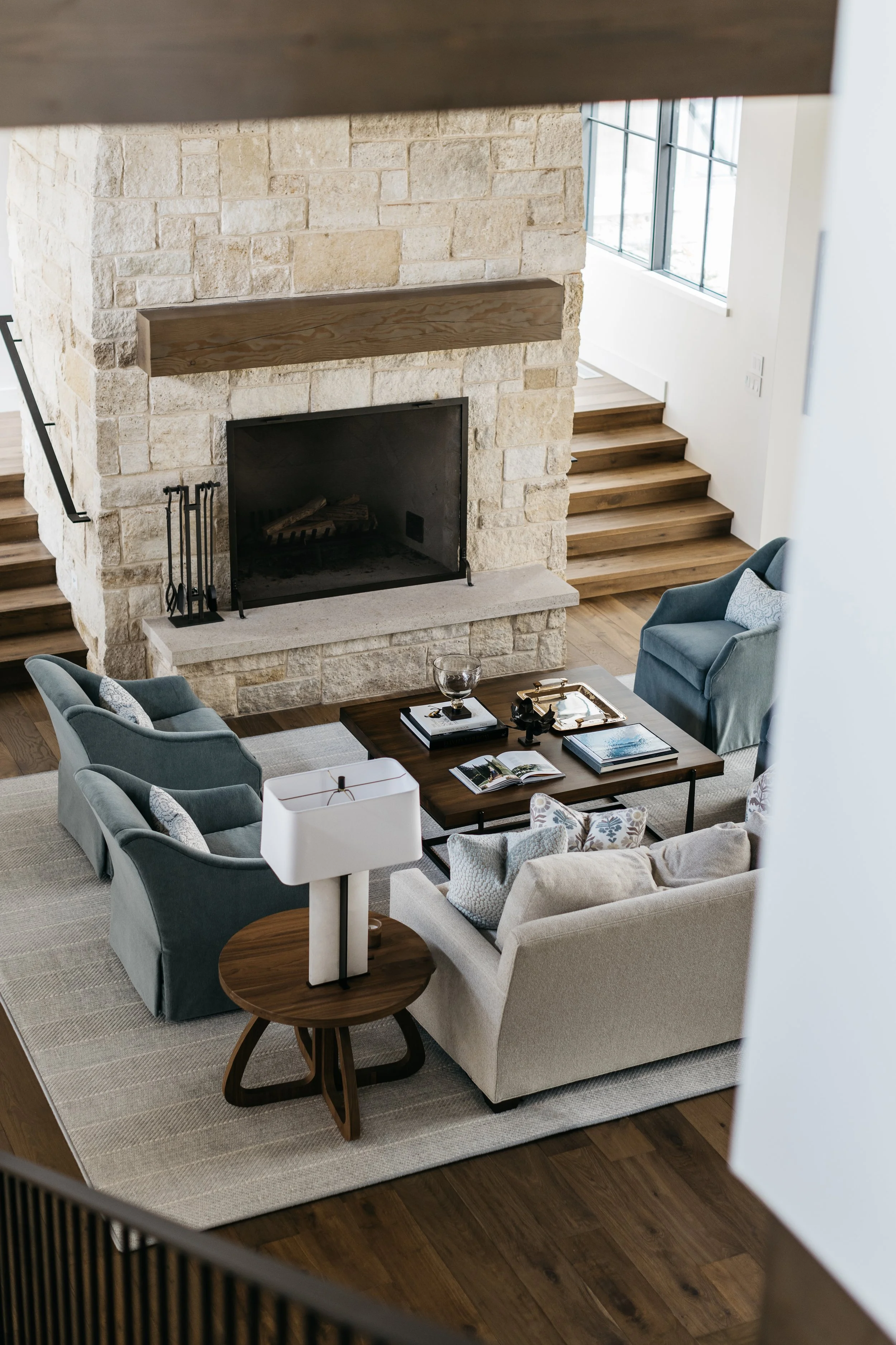 Perched in the hills of Sun Valley’s White Clouds, the Monarch Residence is a warm interpretation of mountain contemporary design. Studio Boden created interiors that balance refined modern lines with a collected, personal feel—layering the clients’ treasured pieces from past homes alongside contemporary furnishings. A soft palette of creamy whites, pale blues, and natural wood tones creates an airy calm, while warm stone, plaster walls, and iron accents add texture and timeless character. Designed as a full-time residence, the home captures the relaxed elegance and natural beauty of life in the mountains.